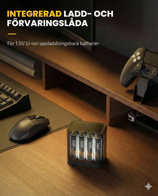 Batteriladdare med 8 uppladdningsbara AA-batterier – snabbladdare 2,5 timmar (för AA- och AAA-batterier)