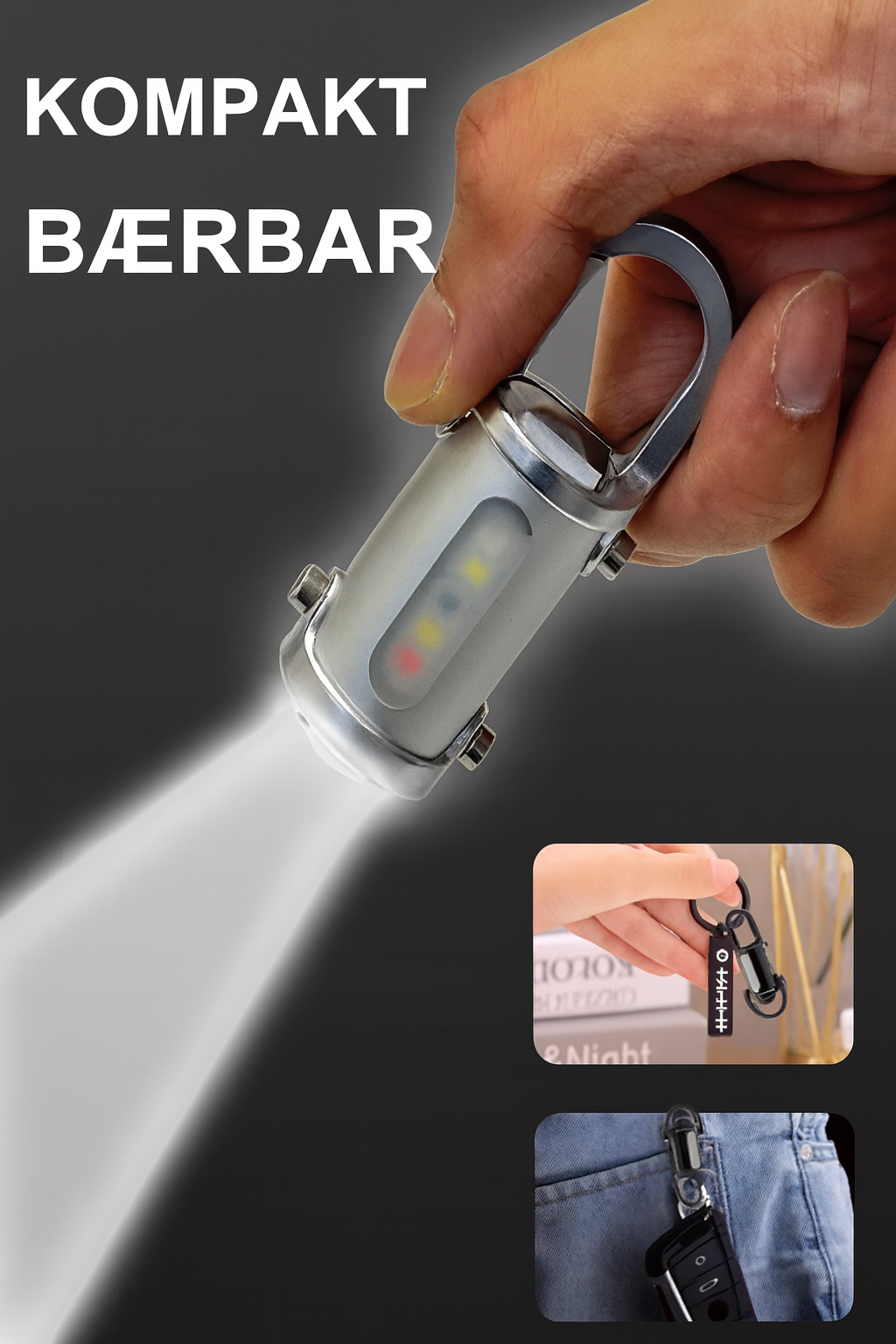 Bygget til at holde og modstå selv krævende forhold. Det holdbare metalhus er både stødsikkert og vandtæt, hvilket sikrer pålidelig ydeevne i alt slags vejr. Med sit kompakte og bærbare design kan den let fastgøres til din nøglering, så du altid har en kraftfuld lyskilde lige ved hånden.