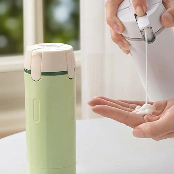 Med ett enkelt tryck får du snabbt tillgång till schampo, lotion, rengöring eller toner. De fyra inbyggda behållarna är enkla att fylla – skruva av locket och häll i vätskan. Varje fack har tydlig volymmarkering (5–30 ml) och praktiska etiketter för optimal ordning.