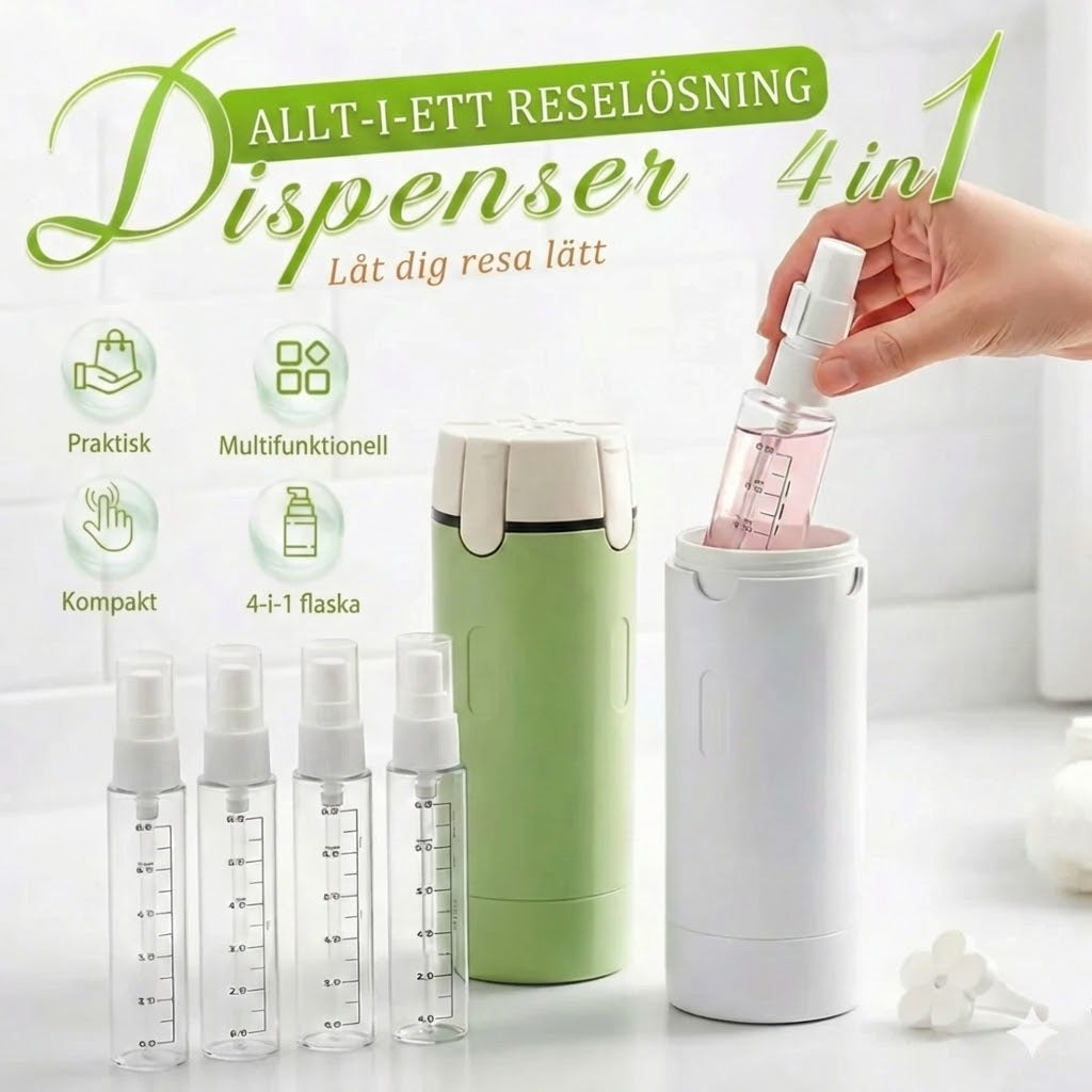 Förpackningen innehåller: 1 × 4-i-1 påfyllningsbar reseflaska (återanvändbar)