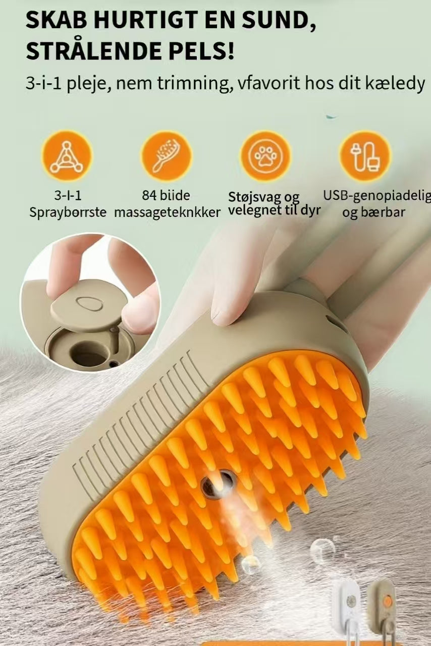 Med Dampkammen får du hyggelige plejestunder uden hår, der flyver rundt. Den 3-i-1 funktionalitet – børstning, massage og spray – gør den både praktisk og økonomisk. Uanset hvor du er, sikrer den støjsvage drift en rolig oplevelse for både dig og dit kæledyr.