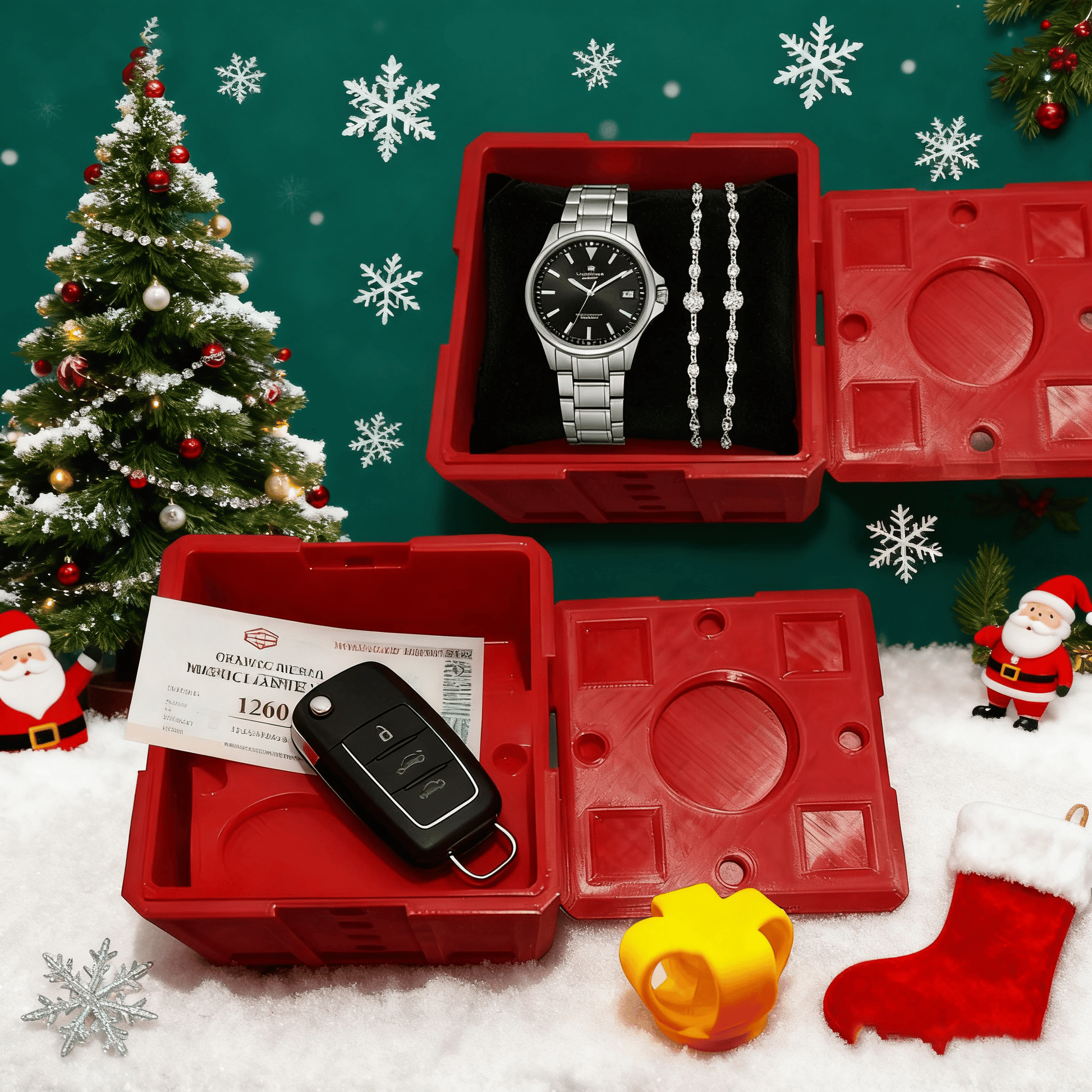 Een Slim Ontwerp als Speelse Uitdaging Het openen is een speelse uitdaging op zich. De doos werkt via een draaischroef-mechanisme, maar de ontvanger moet eerst de verborgen sleutel onder het lint ontdekken. Vervolgens moeten er meerdere schroeven worden losgedraaid. Dit slimme ontwerp bouwt de spanning perfect op en maakt het uitpakken een extra speciale en interactieve ervaring.