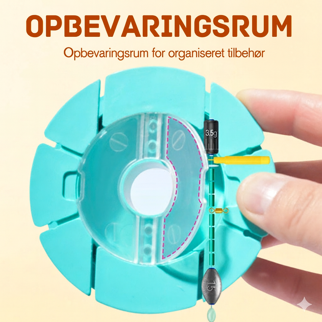 Denne alt-i-én løsning er udviklet til maksimal bekvemmelighed. Bagpå holderen findes et praktisk indbygget opbevaringsrum til små fiskeaccessories som kroge og lodder. På den måde forbliver alt pænt organiseret og sikkert samlet ét sted. Du er altid perfekt forberedt og klar til dit næste fiskeeventyr.