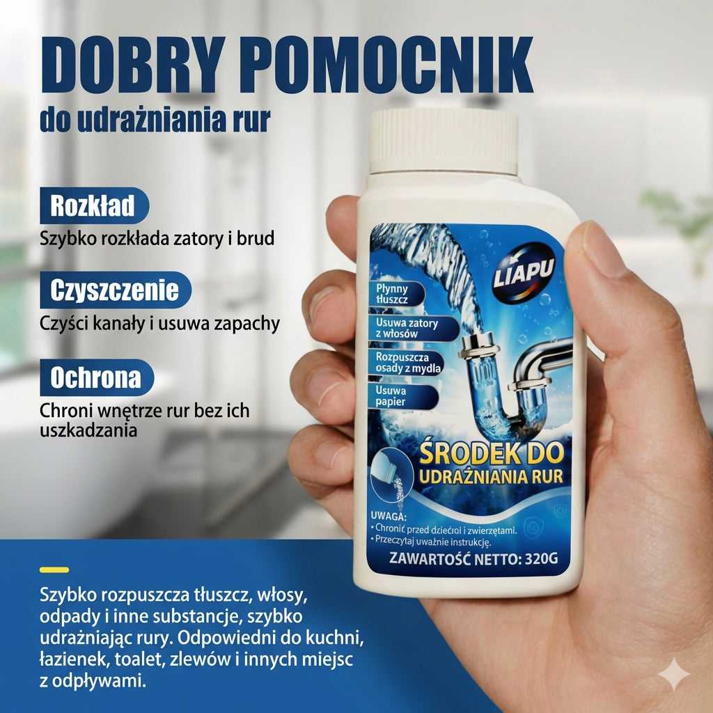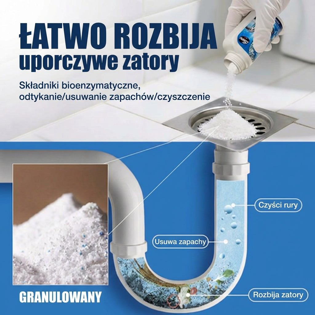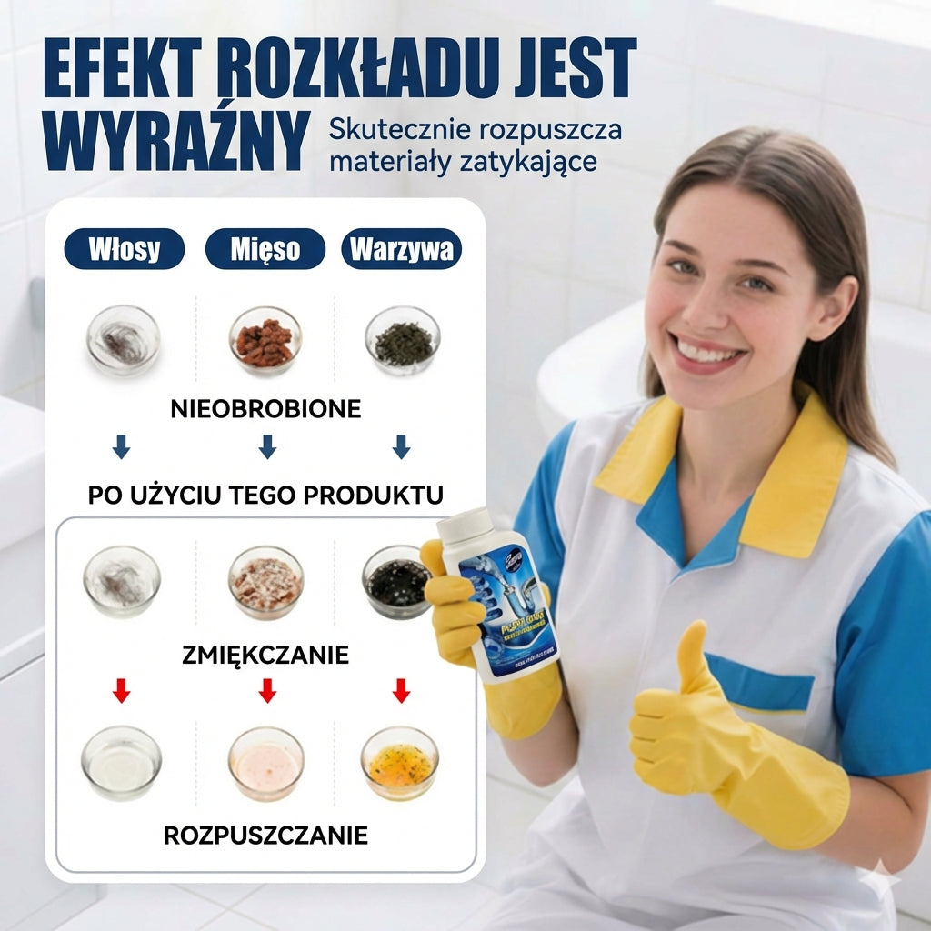 Återställ flödet på ett ögonblick. Denna effektiva formula är särskilt framtagen för att bryta ner hår, fett och organiskt avfall som orsakar svåra stopp. Oavsett om det gäller köksavlopp, handfat i badrummet eller toaletten, rengörs rören snabbt och grundligt.