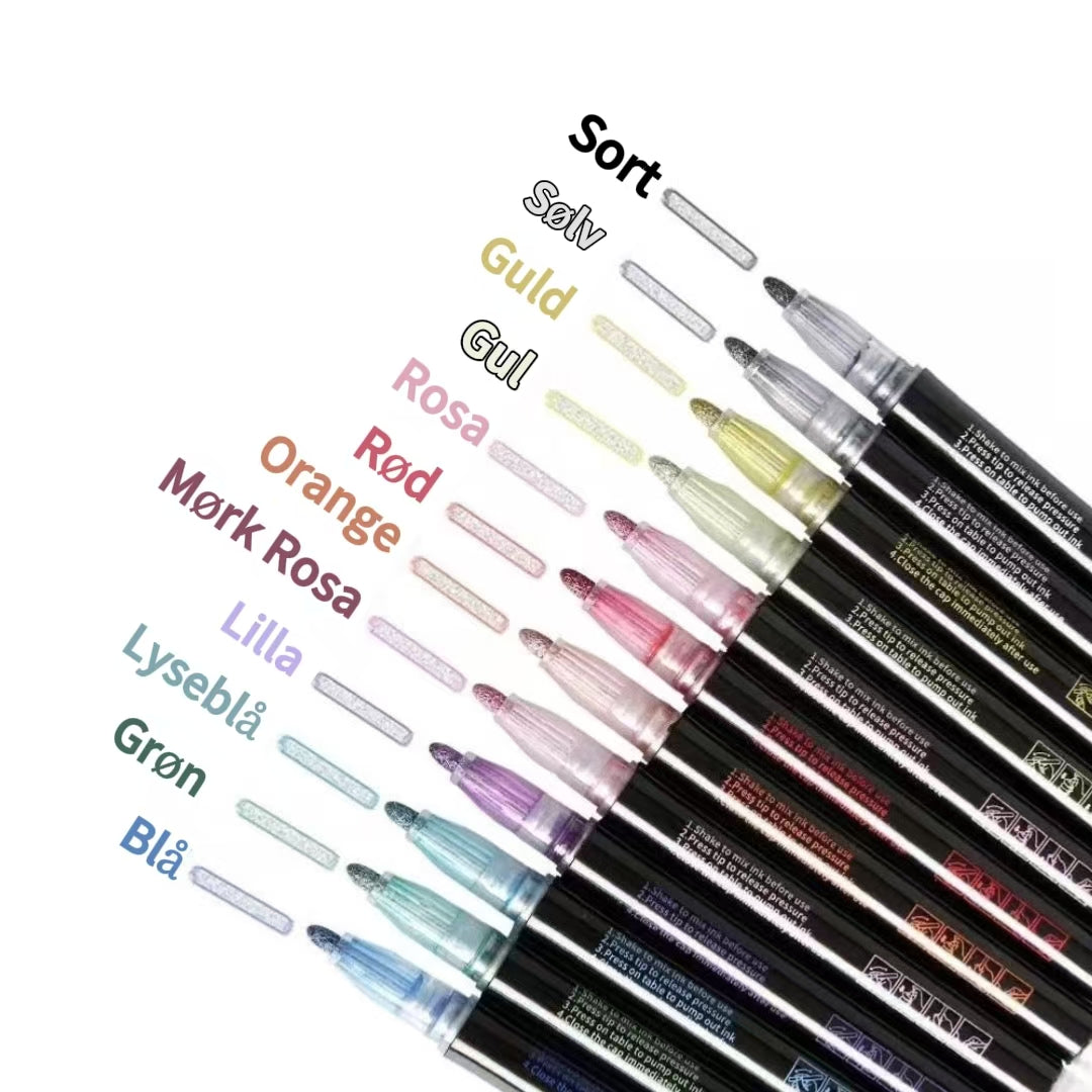 Forvandl hverdagsgenstande til unikke kunstværker. Disse metallic tuscher giver dine kreationer en strålende glans og kan bruges på mange forskellige materialer. Uanset om du arbejder på papir, glas eller akryl, vil dine designs straks blive til iøjnefaldende blikfang. Perfekte til kortfremstilling, dekorationer eller ethvert andet kreativt projekt.