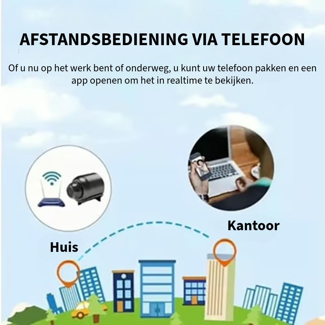 Dankzij de geavanceerde infrarood-nachtvisie legt deze Mini HD Camera haarscherpe beelden vast in volledige duisternis – zonder zichtbaar licht of signaal. Volledige discretie en continue monitoring voor optimale privacy en veiligheid.