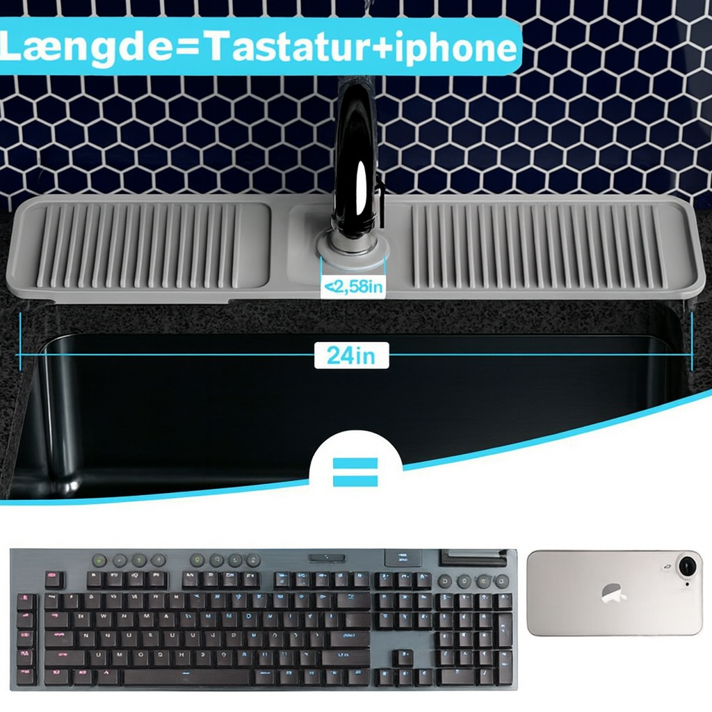 Er du også træt af vandpytter omkring køkkenhanen? Denne silikone hane-måtte er den perfekte løsning til at holde dit bordpladeområde tørt og pænt. Måtten fungerer som en effektiv stænkskærm, der opfanger alle dråber og sprøjt. Takket være det smarte design løber vandet direkte tilbage i vasken, så du undgår både kalkaflejringer og fugtpletter.