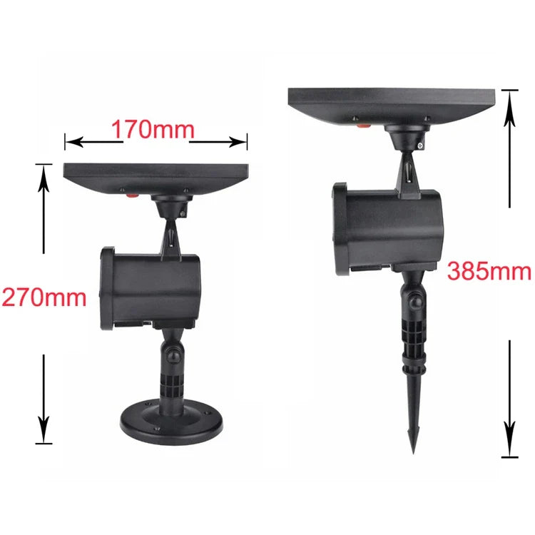 Volledig Automatisch op Zonne-energie Geniet van moeiteloze verlichting, zonder kabels of schakelaars. De projector werkt volledig op zonne-energie en schakelt automatisch aan in de avond en uit bij zonsopgang, waardoor handmatige taken overbodig zijn. De ingebouwde professionele laserbuis (Klasse 2) zorgt voor een heldere, veilige projectie en is veilig en toegankelijk voor iedereen.