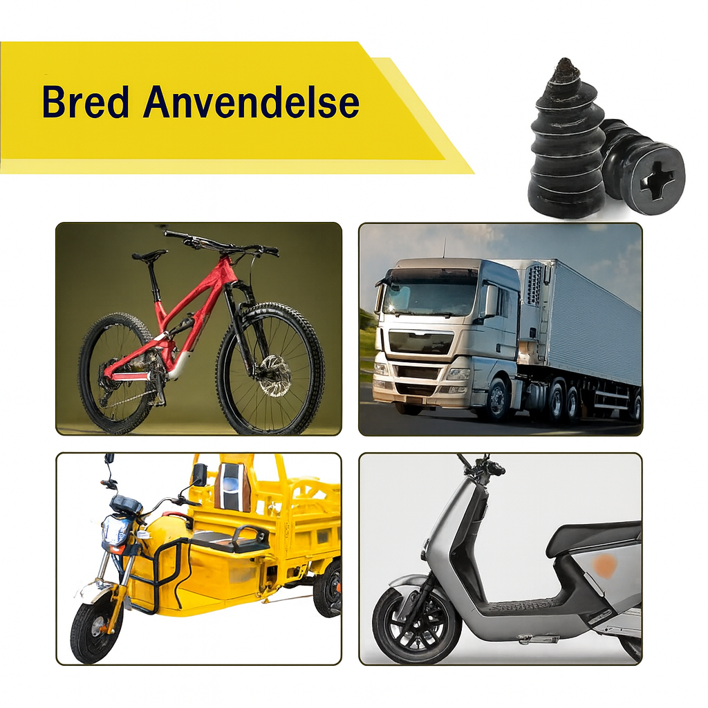 Takket være den brede kompatibilitet er dette sæt velegnet til en lang række køretøjer. Uanset om du har punktering på bil, motorcykel, scooter eller endda landbrugskøretøj, giver disse søm en pålidelig løsning. Den uundværlige nødreparation til alle tubeless dæk.